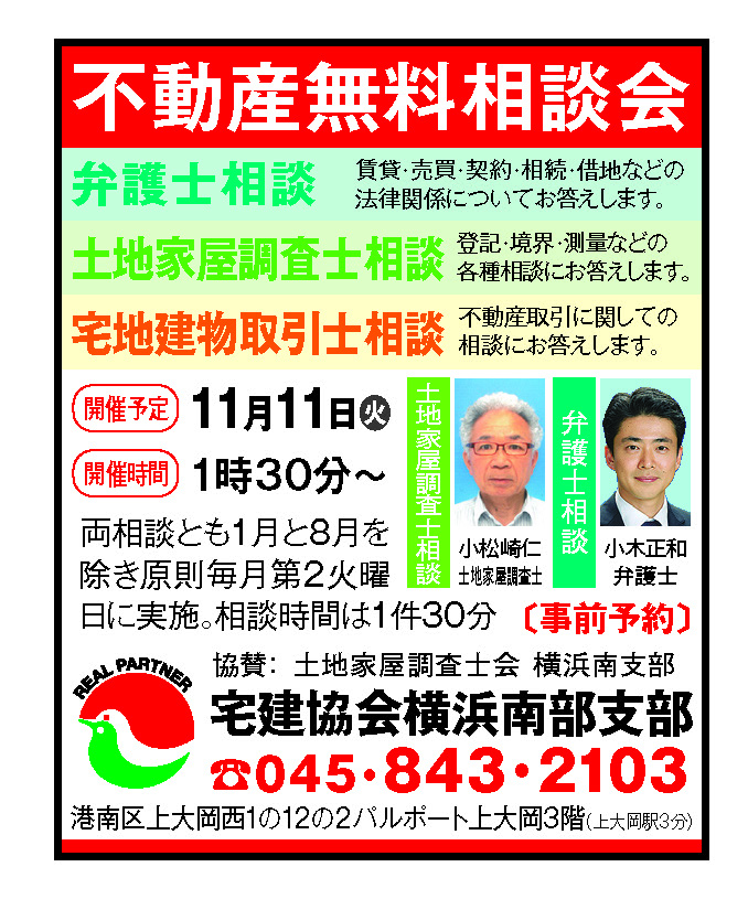 【横浜南部支部】11月支部無料相談・開催のお知らせ