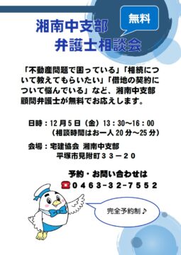 【湘南中支部】12月5日(金)弁護士による無料相談会のお知らせ